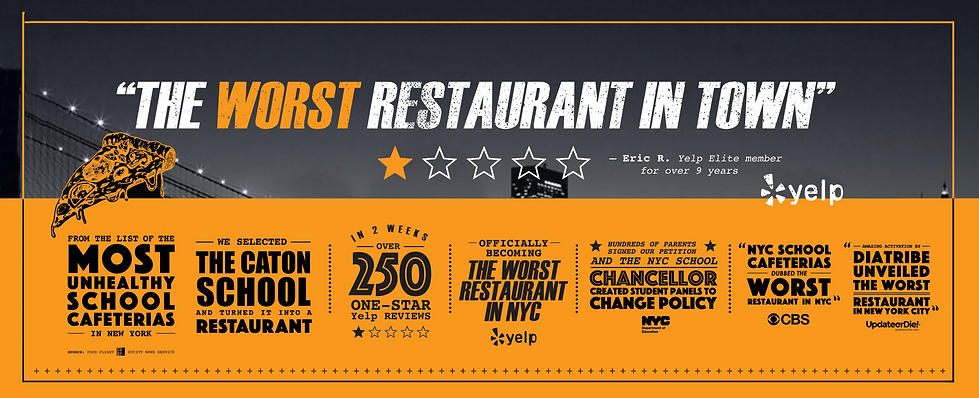 We created a Yelp profile for The Caton Cafe—a new restaurant with the same name, address as a notably bad NYC public school cafeteria, complete with a website and menu derived entirely from the actual school lunch menu.